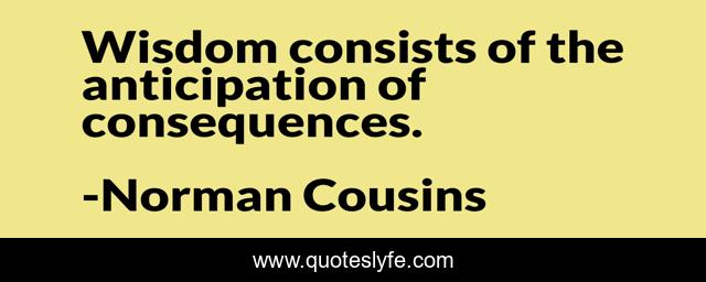 This page presents the quote "Wisdom consists of the anticipation of consequences.". Author of this quote is Norman Cousins. This quote is about anticipation, consequences,.