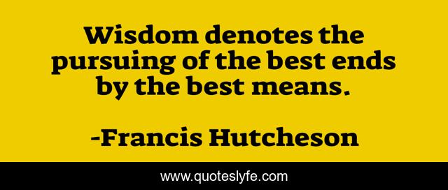 This page presents the quote "Wisdom denotes the pursuing of the best ends by the best means.". Author of this quote is Francis Hutcheson. This quote is about ends, best, pursuing,.