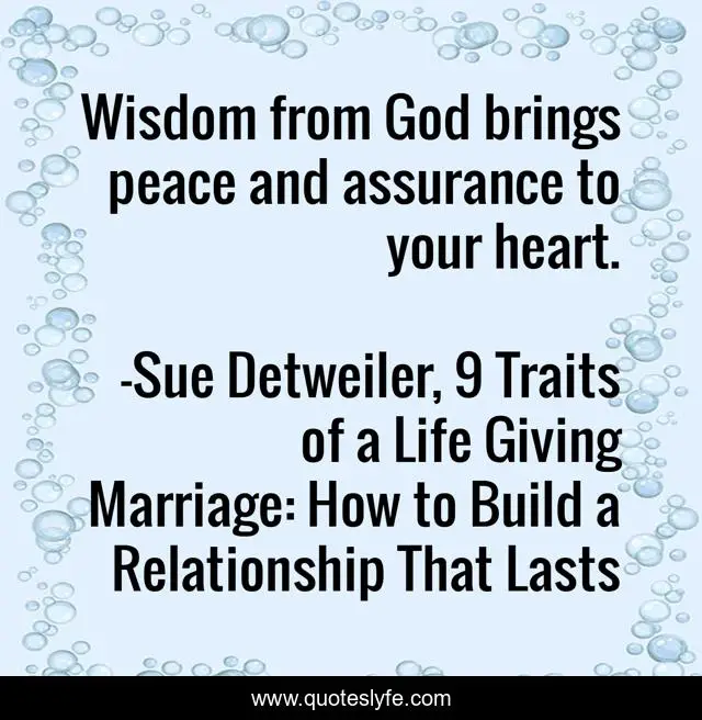 "Sue Detweiler, 9 Traits of a Life Giving Marriage: How to Build a Relationship That Lasts Quotes." Quoteslyfe.com, 2025. Sat. 06 Dec. 2025. <https://www.quoteslyfe.com/quote/Wisdom-from-God-brings-peace-and-assurance-77339>.