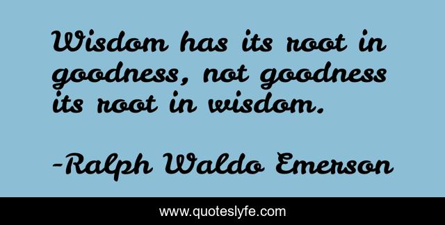 This page presents the quote "Wisdom has its root in goodness, not goodness its root in wisdom.". Author of this quote is Ralph Waldo Emerson. This quote is about root, goodness,.