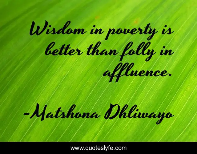 "Matshona Dhliwayo Quotes." Quoteslyfe.com, 2025. Sat. 06 Dec. 2025. <https://www.quoteslyfe.com/quote/Wisdom-in-poverty-is-better-than-folly-98709>.