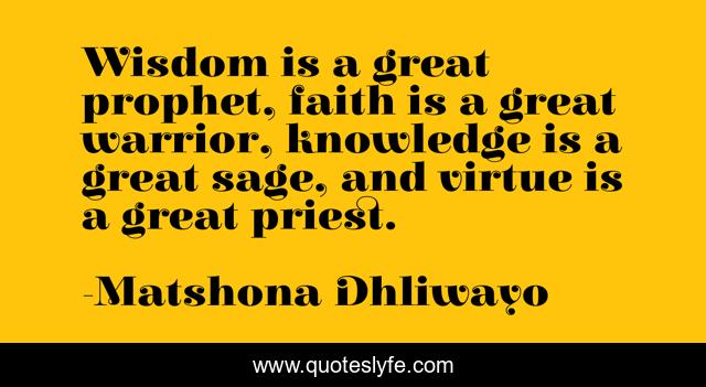 "Matshona Dhliwayo Quotes." Quoteslyfe.com, 2025. Tue. 09 Dec. 2025. <https://www.quoteslyfe.com/quote/Wisdom-is-a-great-prophet-faith-is-15338>.