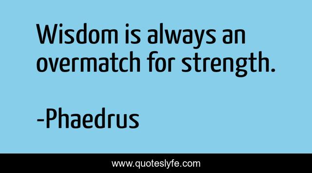 This page presents the quote "Wisdom is always an overmatch for strength.". Author of this quote is Phaedrus. .