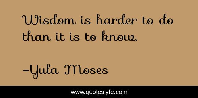 This page presents the quote "Wisdom is harder to do than it is to know.". Author of this quote is Yula Moses. This quote is about going, getting,.