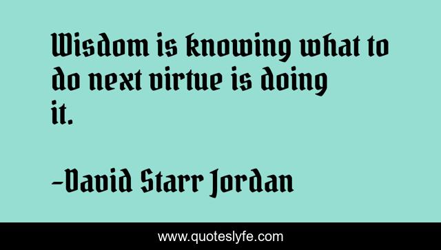 This page presents the quote "Wisdom is knowing what to do next virtue is doing it.". Author of this quote is David Starr Jordan. This quote is about knowing, virtue,.