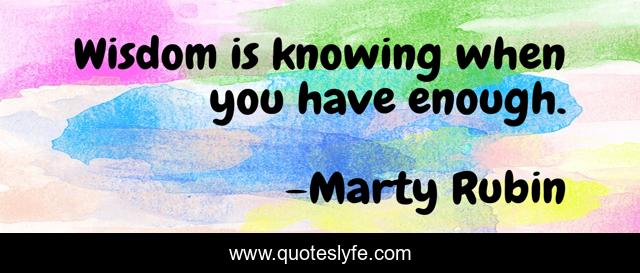 This page presents the quote "Wisdom is knowing when you have enough.". Author of this quote is Marty Rubin. This quote is about enough, wisdom,.