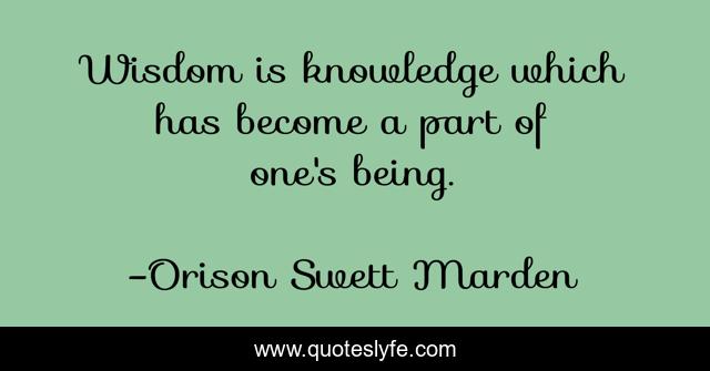 This page presents the quote "Wisdom is knowledge which has become a part of one's being.". Author of this quote is Orison Swett Marden. This quote is about being, become, wisdom,.