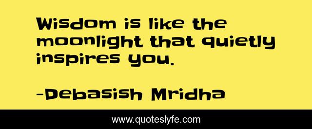 This page presents the quote "Wisdom is like the moonlight that quietly inspires you.". Author of this quote is Debasish Mridha. This quote is about philosophy, debasish-mridha, wisdom, quotes, inspirational, enthusiasm, education, debasish-mridha-m-d, inspiration,.