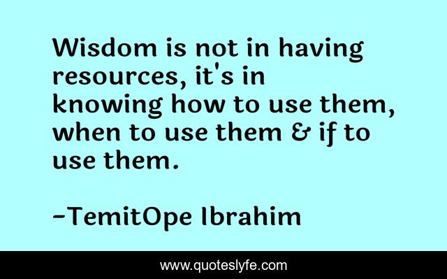 "TemitOpe Ibrahim Quotes." Quoteslyfe.com, 2025. Fri. 05 Dec. 2025. <https://www.quoteslyfe.com/quote/Wisdom-is-not-in-having-resources-it-13853>.
