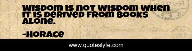 This page presents the quote "Wisdom is not wisdom when it is derived from books alone.". Author of this quote is Horace. This quote is about alone, books, derived,.