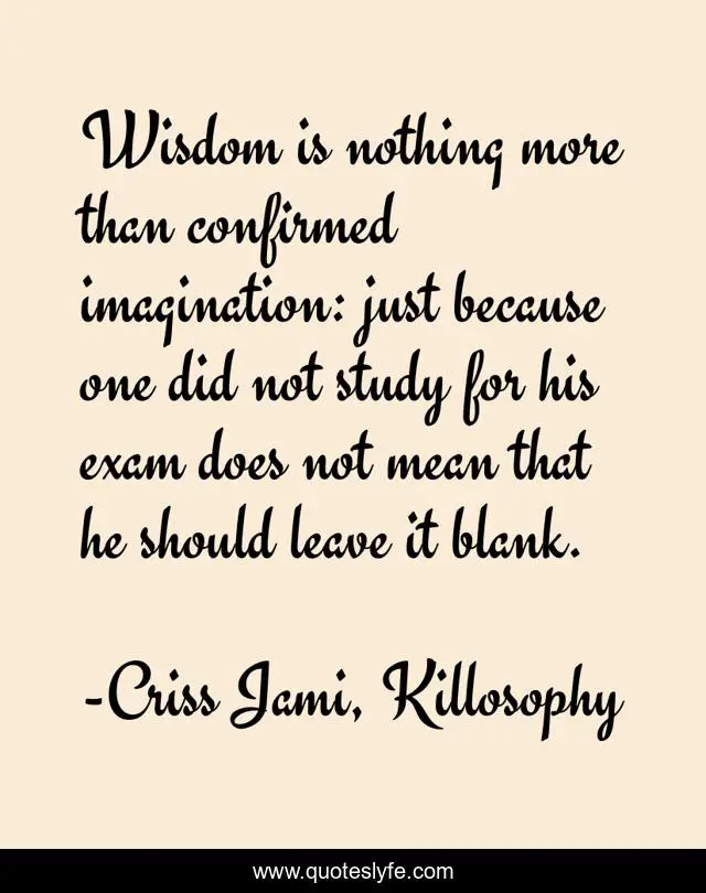 "Criss Jami, Killosophy Quotes." Quoteslyfe.com, 2025. Sat. 06 Dec. 2025. <https://www.quoteslyfe.com/quote/Wisdom-is-nothing-more-than-confirmed-imagination-13243>.