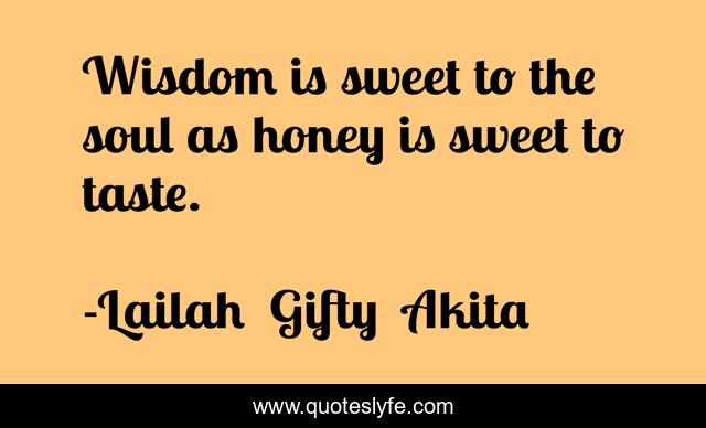 This page presents the quote "Wisdom is sweet to the soul as honey is sweet to taste.". Author of this quote is Lailah Gifty Akita. This quote is about good-thoughts, soul, wisdom,.