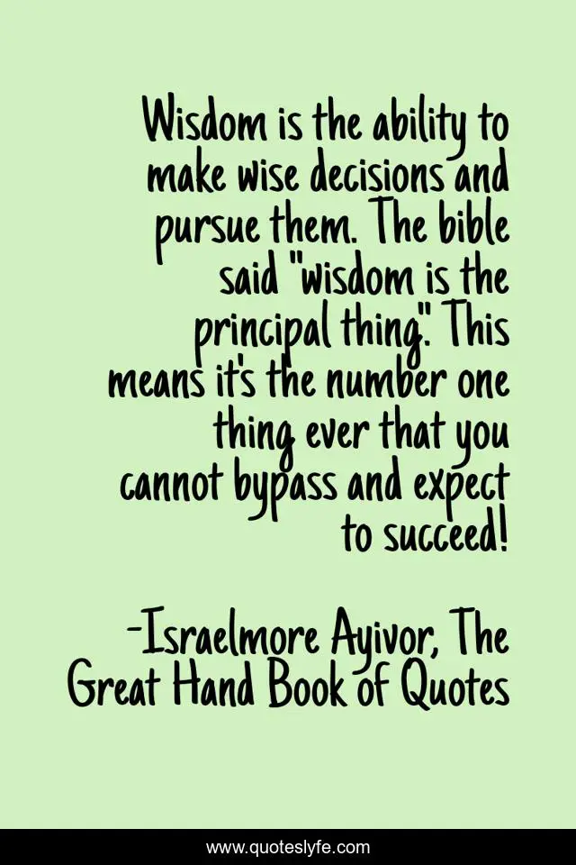 "Israelmore Ayivor, The Great Hand Book of Quotes Quotes." Quoteslyfe.com, 2025. Fri. 05 Dec. 2025. <https://www.quoteslyfe.com/quote/Wisdom-is-the-ability-to-make-wise-129871>.