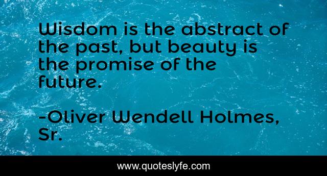 This page presents the quote "Wisdom is the abstract of the past, but beauty is the promise of the future.". Author of this quote is Oliver Wendell Holmes, Sr.. This quote is about past, future, wisdom,.
