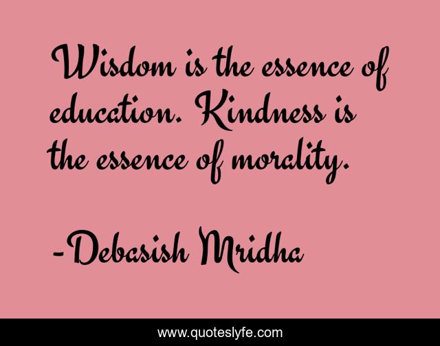 This page presents the quote "Wisdom is the essence of education. Kindness is the essence of morality.". Author of this quote is Debasish Mridha. This quote is about kindness, philosophy, debasish-mridha, wisdom, quotes, inspirational, enthusiasm, education, debasish-mridha-m-d,.