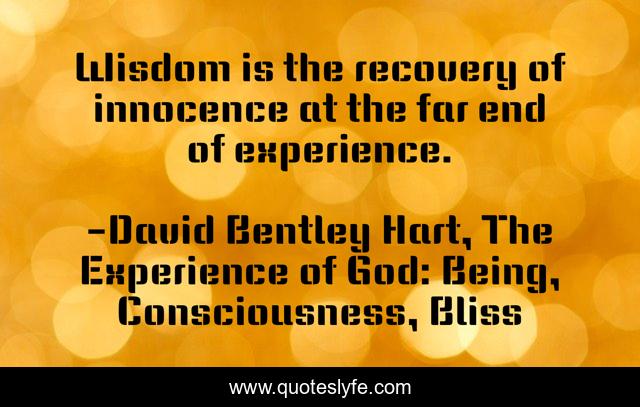 This page presents the quote "Wisdom is the recovery of innocence at the far end of experience.". Author of this quote is David Bentley Hart, The Experience of God: Being, Consciousness, Bliss. This quote is about innoc, wisdom,.