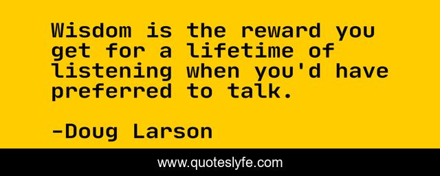 This page presents the quote "Wisdom is the reward you get for a lifetime of listening when you'd have preferred to talk.". Author of this quote is Doug Larson. This quote is about reward, listening,.