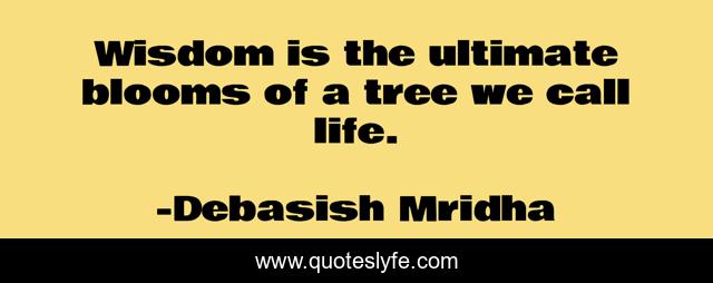 This page presents the quote "Wisdom is the ultimate blooms of a tree we call life.". Author of this quote is Debasish Mridha. This quote is about life, debasish, mridha, philosophy, debasish-mridha, tree, wisdom, blooms,.