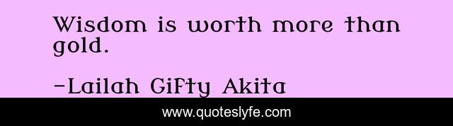 "Lailah Gifty Akita Quotes." Quoteslyfe.com, 2025. Mon. 08 Dec. 2025. <https://www.quoteslyfe.com/quote/Wisdom-is-worth-more-than-gold-34355>.
