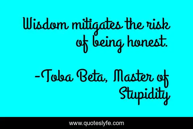 This page presents the quote "Wisdom mitigates the risk of being honest.". Author of this quote is Toba Beta, Master of Stupidity. This quote is about honest, risk, wisdom,.