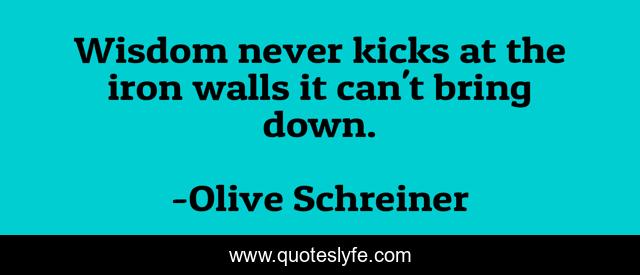 "Olive Schreiner Quotes." Quoteslyfe.com, 2025. Tue. 09 Dec. 2025. <https://www.quoteslyfe.com/quote/Wisdom-never-kicks-at-the-iron-walls-259323>.