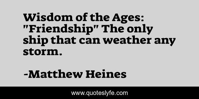 This page presents the quote "Wisdom of the Ages: "Friendship" The only ship that can weather any storm.". Author of this quote is Matthew Heines. This quote is about humorous, friendship, humorous-inspirational,.