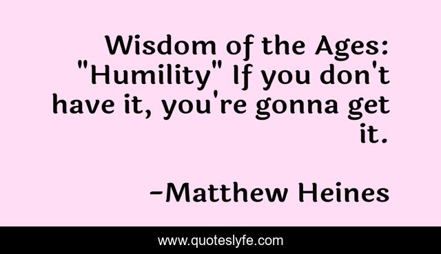 This page presents the quote "Wisdom of the Ages: "Humility" If you don't have it, you're gonna get it.". Author of this quote is Matthew Heines. This quote is about funny, humorist, humor, humorous, funny-but-true, humility, comedy,.