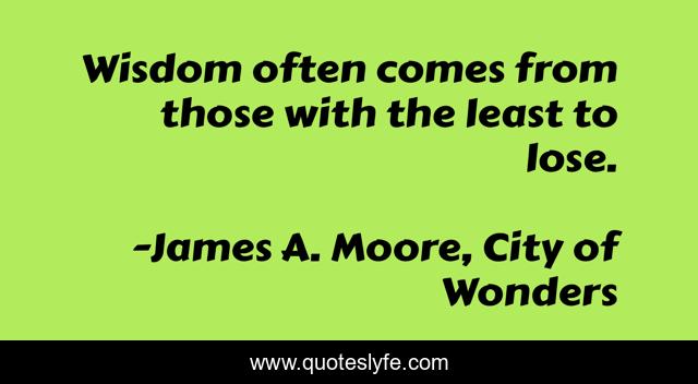 This page presents the quote "Wisdom often comes from those with the least to lose.". Author of this quote is James A. Moore, City of Wonders. This quote is about loss, wisdom, inspirational, enthusiasm,.