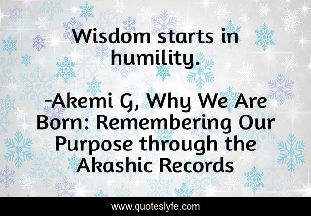 "Akemi G, Why We Are Born: Remembering Our Purpose through the Akashic Records Quotes." Quoteslyfe.com, 2025. Sat. 06 Dec. 2025. <https://www.quoteslyfe.com/quote/Wisdom-starts-in-humility-98980>.