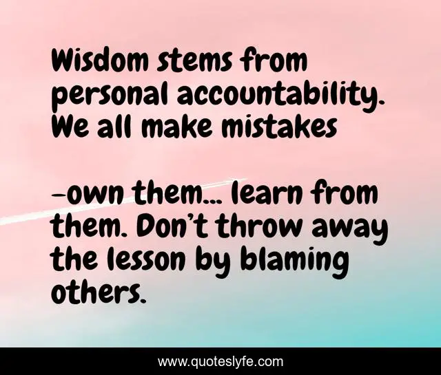 "own them... learn from them. Don’t throw away the lesson by blaming others. Quotes." Quoteslyfe.com, 2025. Fri. 05 Dec. 2025. <https://www.quoteslyfe.com/quote/Wisdom-stems-from-personal-accountability-We-all-116957>.