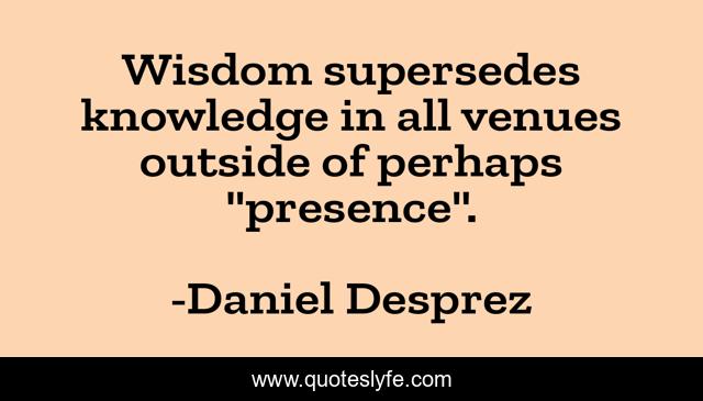 This page presents the quote "Wisdom supersedes knowledge in all venues outside of perhaps "presence".". Author of this quote is Daniel Desprez. .