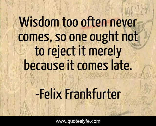 This page presents the quote "Wisdom too often never comes, so one ought not to reject it merely because it comes late.". Author of this quote is Felix Frankfurter. .