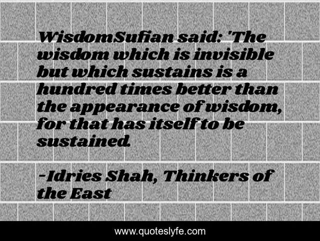 "Idries Shah, Thinkers of the East Quotes." Quoteslyfe.com, 2025. Sun. 07 Dec. 2025. <https://www.quoteslyfe.com/quote/WisdomSufian-said-The-wisdom-which-is-invisible-203513>.