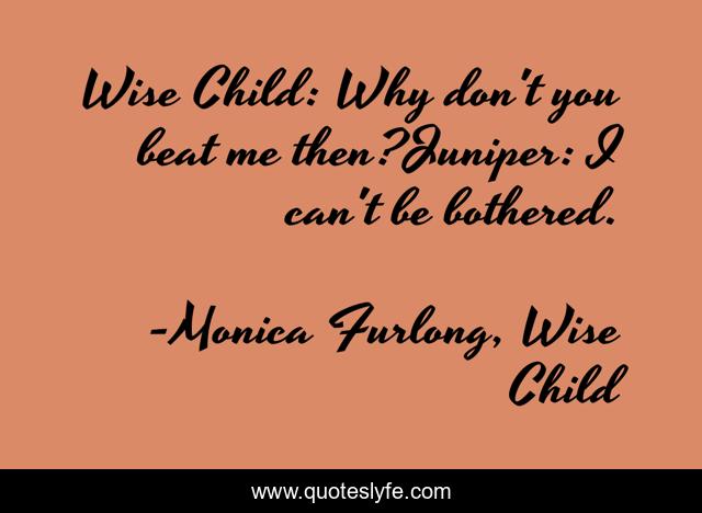This page presents the quote "Wise Child: Why don't you beat me then?Juniper: I can't be bothered.". Author of this quote is Monica Furlong, Wise Child. .