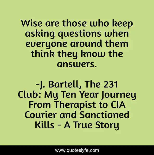 "J. Bartell, The 231 Club: My Ten Year Journey From Therapist to CIA Courier and Sanctioned Kills - A True Story Quotes." Quoteslyfe.com, 2025. Fri. 05 Dec. 2025. <https://www.quoteslyfe.com/quote/Wise-are-those-who-keep-asking-questions-222255>.