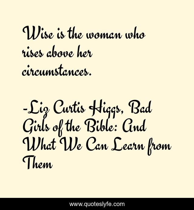 This page presents the quote "Wise is the woman who rises above her circumstances.". Author of this quote is Liz Curtis Higgs, Bad Girls of the Bible: And What We Can Learn from Them. This quote is about rise, woman, wise, above, circumstances,.