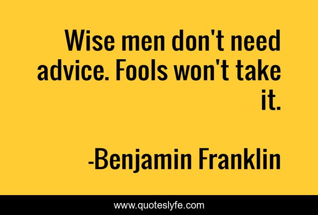 This page presents the quote "Wise men don't need advice. Fools won't take it.". Author of this quote is Benjamin Franklin. This quote is about wise men, advice, wise,.