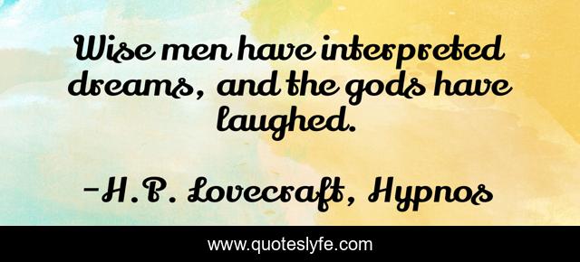 This page presents the quote "Wise men have interpreted dreams, and the gods have laughed.". Author of this quote is H.P. Lovecraft, Hypnos. This quote is about interpretation, futility, interpretation-of-dreams, meaning, senselessness, dreams,.