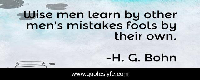 This page presents the quote "Wise men learn by other men's mistakes fools by their own.". Author of this quote is H. G. Bohn. This quote is about failures, mistakes,.