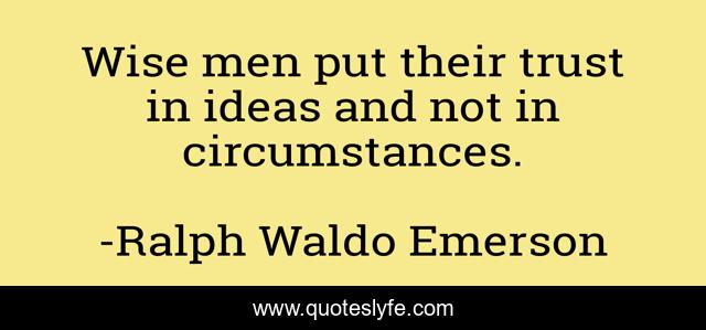 This page presents the quote "Wise men put their trust in ideas and not in circumstances.". Author of this quote is Ralph Waldo Emerson. This quote is about enthusiasm, inspirational,.