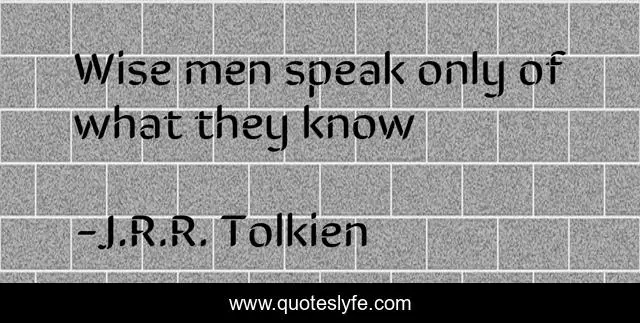 This page presents the quote "Wise men speak only of what they know". Author of this quote is J.R.R. Tolkien. .