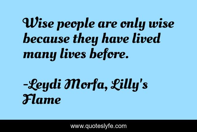 This page presents the quote "Wise people are only wise because they have lived many lives before.". Author of this quote is Leydi Morfa, Lilly's Flame. This quote is about lilly-flame, wise,.