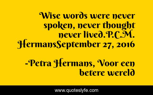 This page presents the quote "Wise words were never spoken, never thought never lived.P.C.M. HermansSeptember 27, 2016". Author of this quote is Petra Hermans, Voor een betere wereld. .