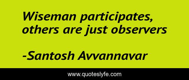 "Santosh Avvannavar Quotes." Quoteslyfe.com, 2025. Sat. 06 Dec. 2025. <https://www.quoteslyfe.com/quote/Wiseman-participates-others-are-just-observers-140243>.