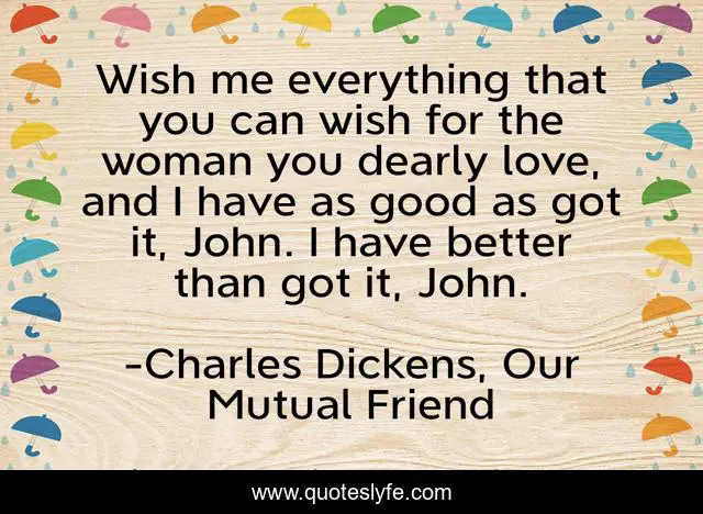 "Charles Dickens, Our Mutual Friend Quotes." Quoteslyfe.com, 2025. Mon. 08 Dec. 2025. <https://www.quoteslyfe.com/quote/Wish-me-everything-that-you-can-wish-138339>.