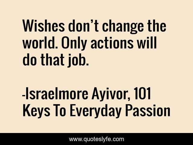 "Israelmore Ayivor, 101 Keys To Everyday Passion Quotes." Quoteslyfe.com, 2025. Mon. 08 Dec. 2025. <https://www.quoteslyfe.com/quote/Wishes-don-t-change-the-world-Only-60226>.