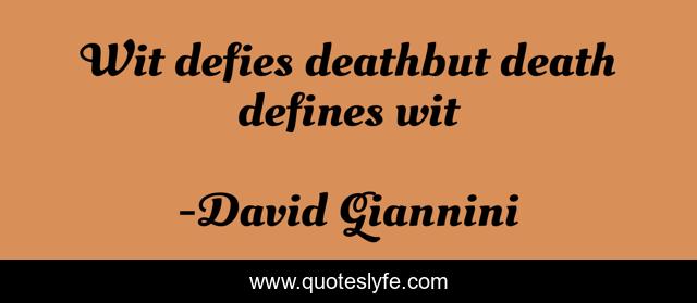 "David Giannini Quotes." Quoteslyfe.com, 2025. Sat. 06 Dec. 2025. <https://www.quoteslyfe.com/quote/Wit-defies-deathbut-death-defines-wit-256442>.
