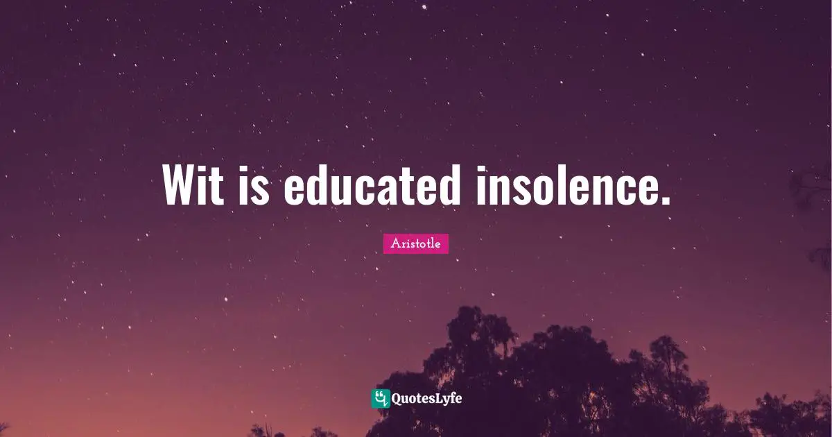 "Aristotle Quotes." Quoteslyfe.com, 2025. Mon. 22 Dec. 2025. <https://www.quoteslyfe.com/quote/Wit-is-educated-insolence-6459>.