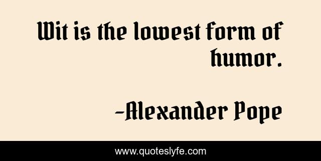 This page presents the quote "Wit is the lowest form of humor.". Author of this quote is Alexander Pope. This quote is about lowest, wit, form,.