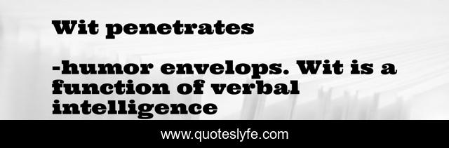 This page presents the quote "Wit penetrates". Author of this quote is humor envelops. Wit is a function of verbal intelligence. .
